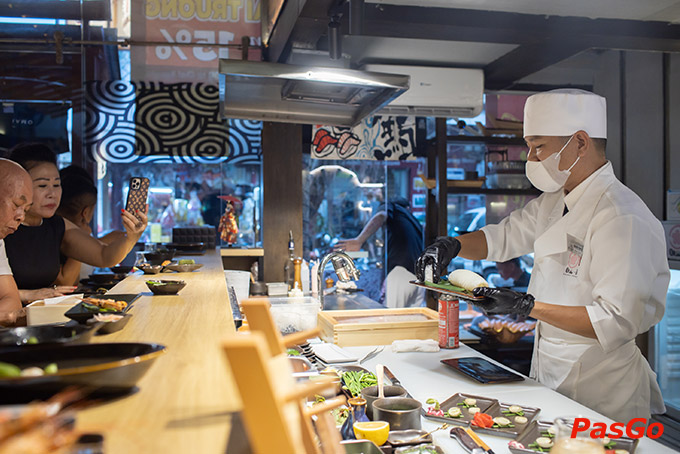 Đây là một nhà hàng hải sản cao cấp ở Hà Nội có nguồn nguyên liệu chất lượng nhập từ Nhật Bản, Nauy. Nhà hàng 5 sao Hà Nội này mang kiến trúc Nhật ấm cúng. Có khu đặc biệt dành cho khách hàng đam mê trải nghiệm Omakase - Teppanyaki. Thực khách được tân mắt chứng kiến đầu bếp chế biến món ăn ngay tại bàn.