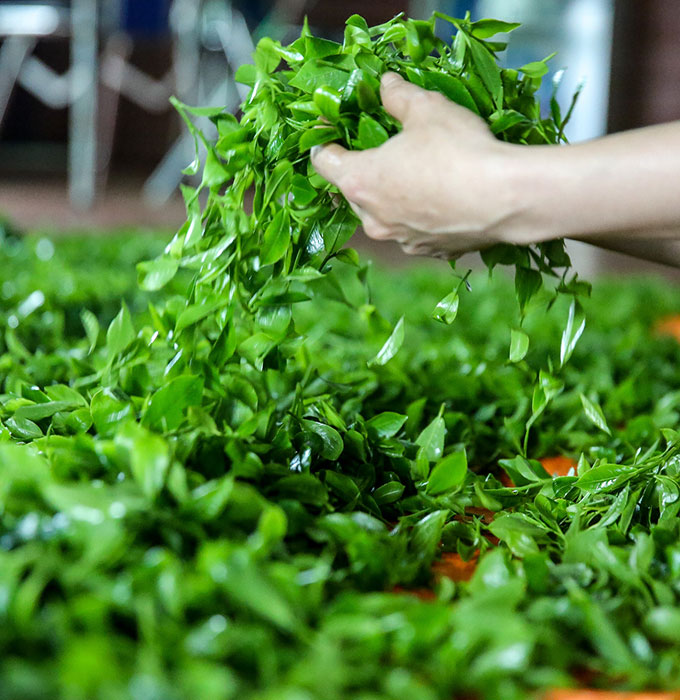 Chè đinh Thái Nguyên được hái theo kiểu truyền thống.