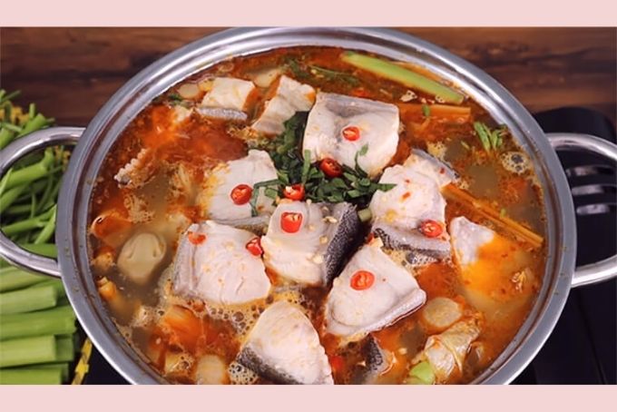 Thành phẩm cách nấu lẩu cá bớp chua cay kiểu thái
