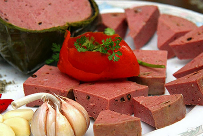 Chả bò ngon nhất là có màu hồng đỏ thẫm, được gói trong lá chuối tươi