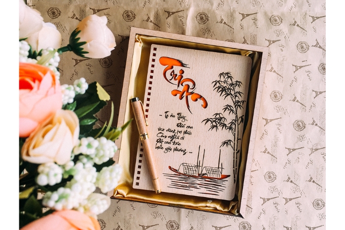Nhặt từng chiếc lá xếp hàng chữ thương.