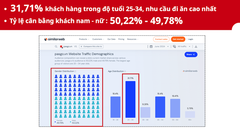 PasGo.vn là trang web đứng TOP3 việt Nam mảng ẩm thực, gần 1 triệu khách hàng truy cập mỗi tháng, tỉ lệ truy cập tự nhiên ~80%, và độ tuổi khách hàng phổ biến nhất ở 25 - 34 tuổi - có thu nhập ổn định, nhu cầu đi ăn nhà hàng cao. PasGo tự tin là giải pháp nền tảng đặt bàn tối ưu dành cho các nhà hàng, giúp bạn tiết kiệm chi phí xây dựng hệ thống và chi phí quản lý nhân viên.