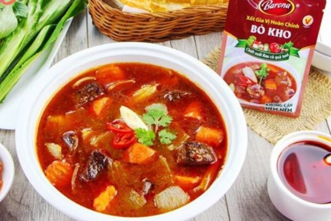 Thành phẩm là món bò sốt vang với nước sốt màu nâu đỏ bắt mắt, sánh mịn. Miếng bò mềm ngấm đều gia vị, và các loại củ quả hầm nhừ ăn kèm bánh mì thì ngon hết ý. Còn chần chừ gì mà không lưu ngay cách nấu bò sốt vang đơn giản bằng gói gia vị không cần rượu vào danh sách món ngon mỗi ngày cho gia đình.