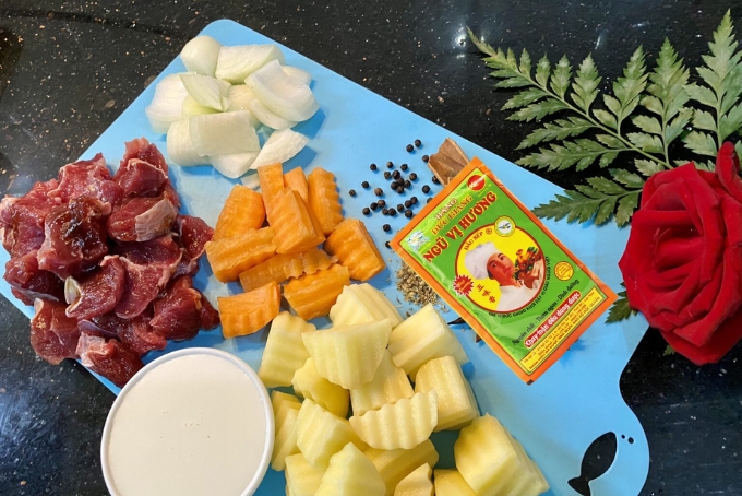 Nguyên liệu nấu bò sốt vang bằng gói gia vị đơn giản