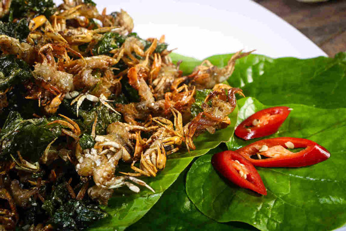 Cua đồng rang lá lốt Hoa Lư - Món ăn ngon Ninh Bình mang vị dân giã.