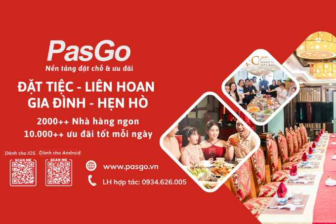 - PasGo là nền tảng đặt bàn trực tuyến duy nhất tại Việt Nam hiện nay, chuyên phục vụ lĩnh vực ẩm thực F&B. Thông qua ứng dụng PasGo (trên iOS, Android) hoặc website www.pasgo.vn, khách hàng có thể dễ dàng tìm kiếm, chọn lựa và đặt bàn trước tại hơn 2000 nhà hàng trên toàn quốc (số liệu tính đến tháng 1/2025).