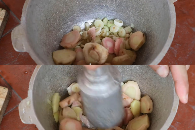 - Sả bóc bỏ lớp bẹ già, cắt phần mủm gốc. Rửa sạch, cắt làm 2-3 khúc.