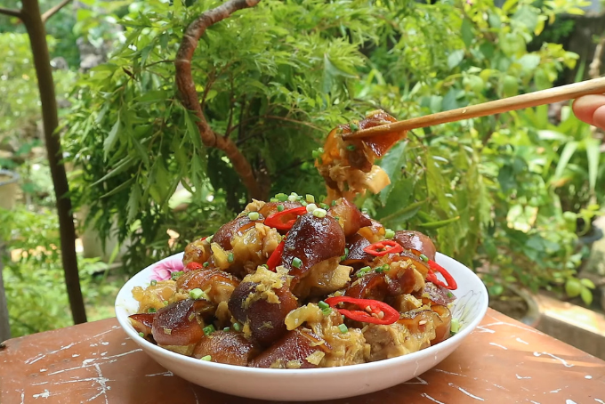 Thưởng thức món chân giò heo nấu giả cầy khi còn nóng.