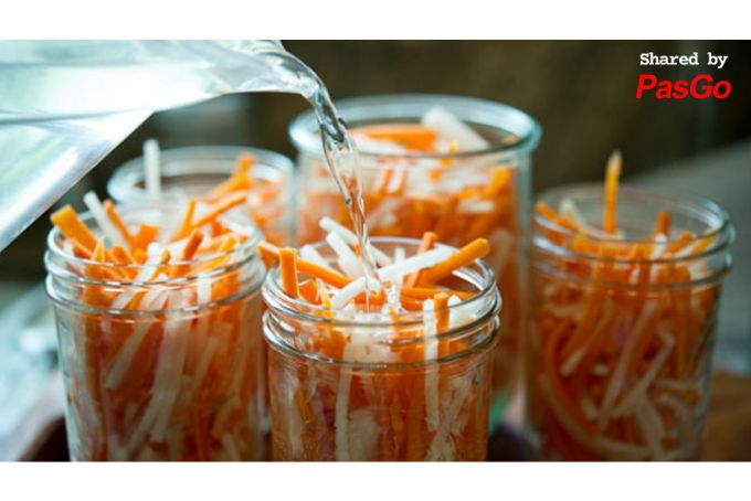 Tiếp theo, bạn cho hỗn hợp giấm đã pha sẵn vào để ngâm củ cải và cà rốt trong vòng 3 - 4 tiếng. Bạn nên ngâm ngập bề mặt củ cải và cà rốt nhé.