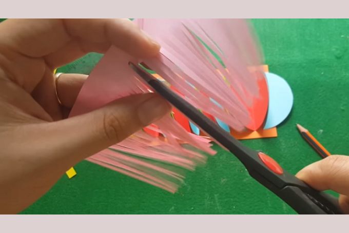 Phần giấy thừa còn lại, bạn có thể cắt rời thành nhiều sợi nhỏ để tạo đường viền trang trí cho đèn Trung thu.