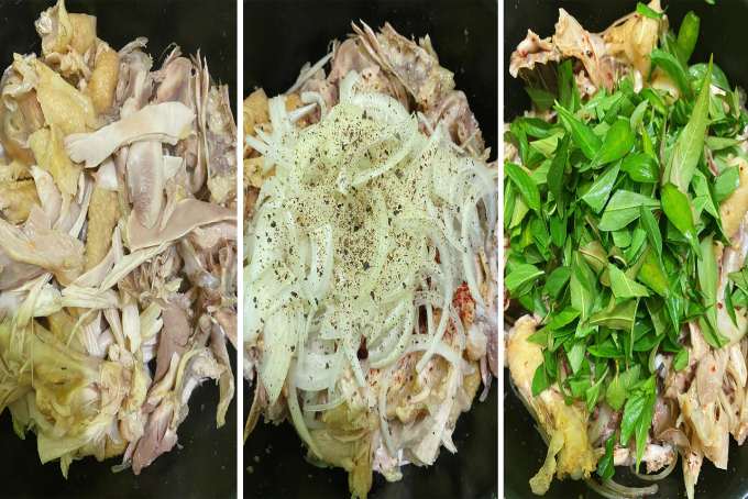 Trộn gỏi gà hành tây