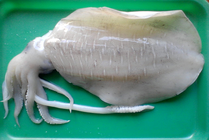 Không chọn những con mực đã chuyển sang màu xanh ngà ngà, thịt nhão, đầu không dính chặt với thân, sẽ có mùi rất tanh vì đó là những con mực kém tươi rồi.