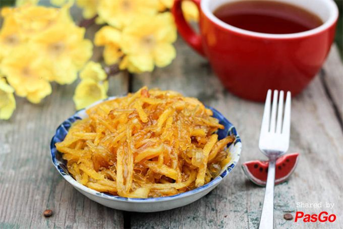 Từng cọng mứt gừng dẻo với thơm, vị cay nồng vừa đủ nên ăn hoài không ngán. Đặc biệt món ăn này để uống cùng trà là rất đúng điệu đấy nhé.