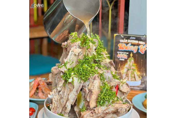Đến với Chang bạn có thể thưởng thức hương vị chua cay với món THÁP XƯƠNG HEO KHỔNG LỒ đầy hấp dẫn. Xương heo hầm ớt hiểm với vị ngọt của nước hầm thịt kết hợp vị chua ngọt của nước Tom Yum và đặc biệt là vị cay nồng của ớt hiểm đảm bảo sẽ là điểm nhấn cho tiệc món ăn Thái của bạn.