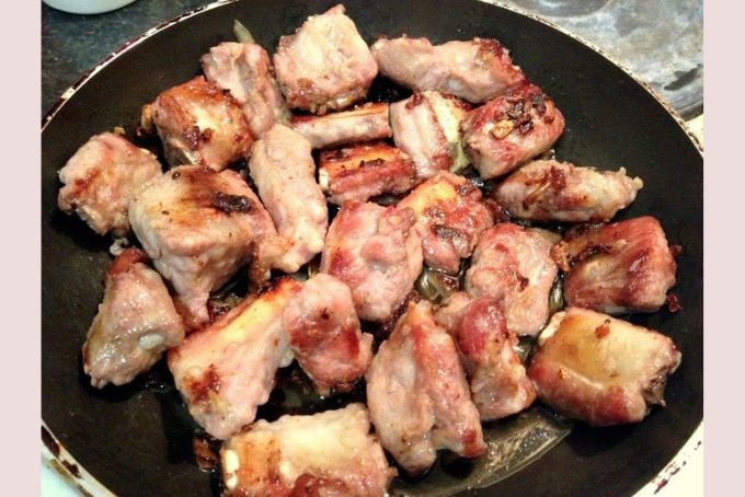 Chiên sườn các mặt để vàng đều, không nên chiên quá kỹ