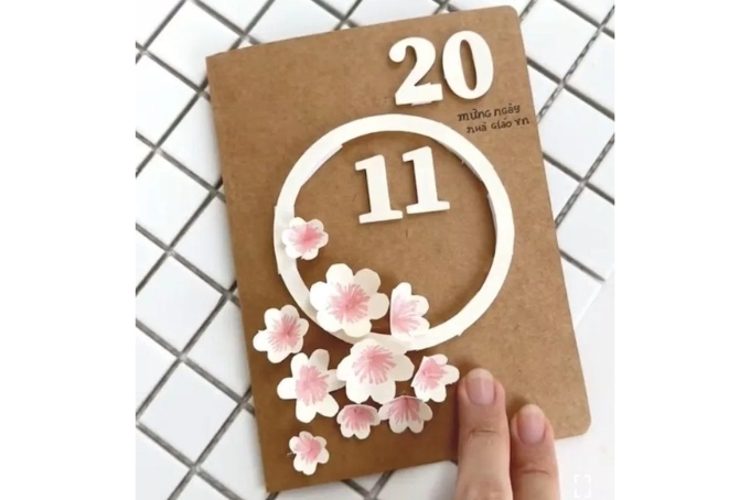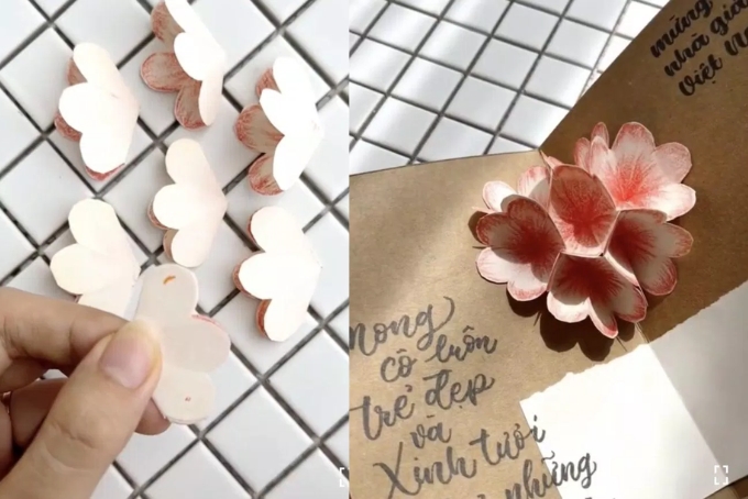 Hoàn thành tấm thiệp 20/11 sáng tạo 3D hình hoa nở