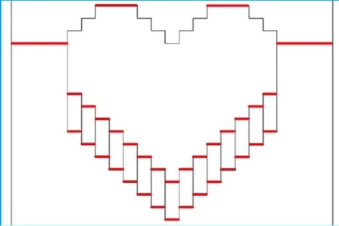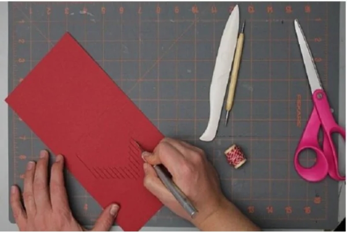 Bước 2: Dùng dao rọc giấy cắt đường màu đen, chừa lại các đường được tô đỏ như hình trong mẫu. Cắt cẩn thận để tránh sai hình trái tim 3D là bạn phải làm lại hết nhé.