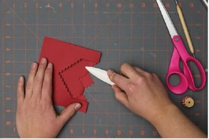 Bước 3: Dùng bút bi hết mực hoặc dao rọc giấy di nhẹ dọc theo các nét in chưa cắt để tạo vết gãy trên giấy để dựng phần 3D nhanh, không bị nhăn.