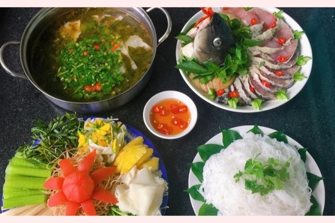 Lẩu cá chép giòn măng chua có vị chua ngọt tự nhiên, nước lẩu đậm đà, thịt cá mềm ngọt: