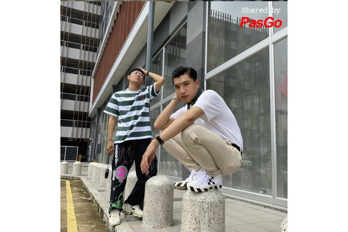 Tạo dáng chụp ảnh 2 người bạn thân nam giới