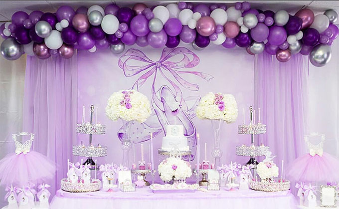 Bàn sinh nhật màu tím chủ đạo vô cùng lộng lẫy