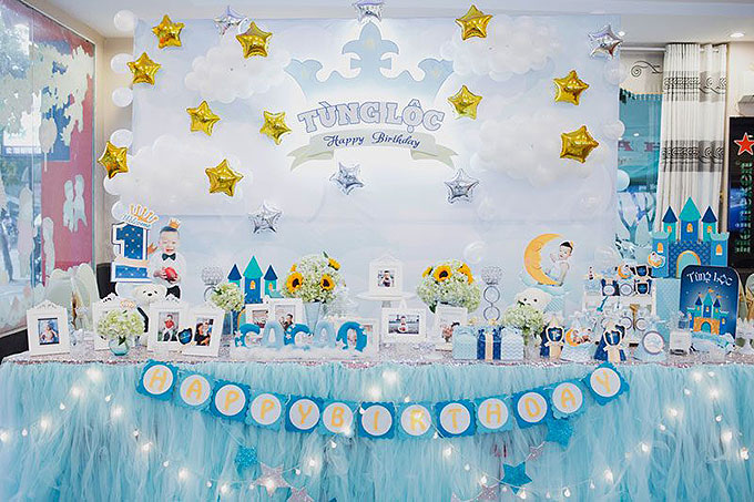 Trang trí bàn tiệc cho bé trai 1 tuổi