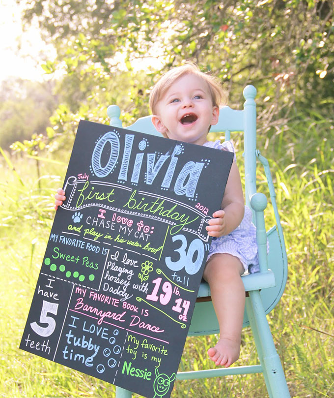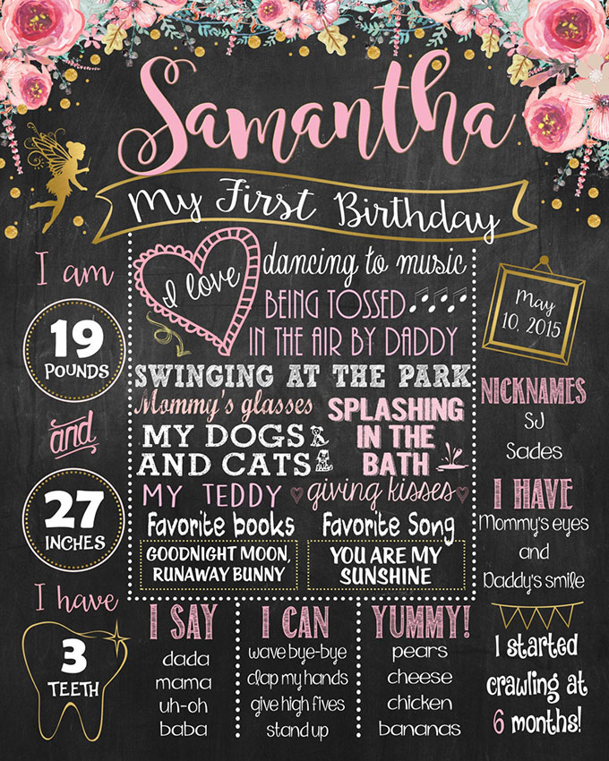 Bảng chúc mừng sinh nhật (hay còn gọi là bảng Chalkboard) có lẽ đã rất phổ biến đối với bố mẹ của các bé. Đối với bé 1 tuổi, từng ngày, từng giờ trong suốt cả năm vừa qua đều là những cột mốc, thời gian vô cùng đáng nhớ. Chắc chắn phụ huynh nào cũng muốn in sâu thời điểm con yêu biết lật, biết lẫy, chập chững những bước đi đầu tiên…