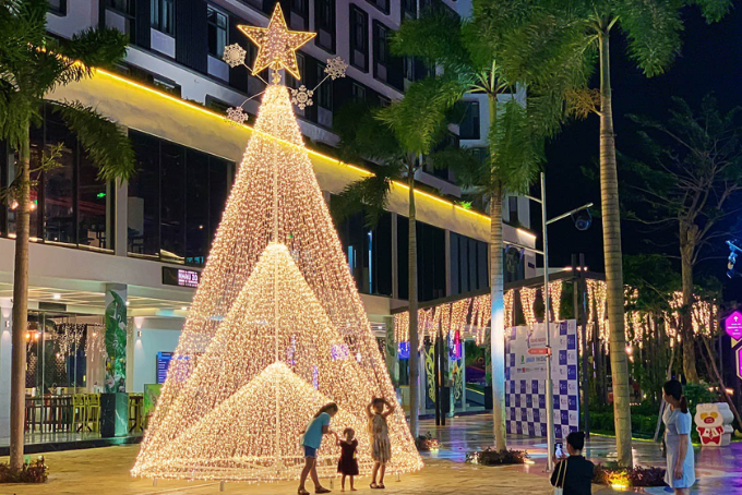 Trang trí cây thông noel ngoài trời bằng đèn led