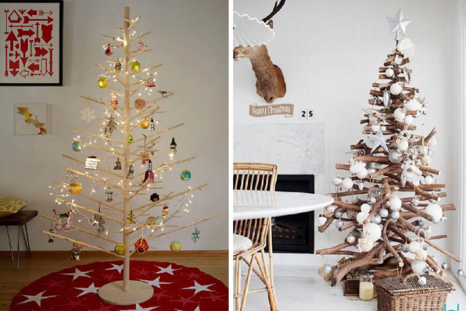 Bạn có thể sử dụng cành cây khô và phủ đầy sơn trắng lên nó, thêm vào những bông tuyết và dây đèn lấp lánh để trang trí Noel cho quán cafe thêm phần hoài cổ và ấm cúng.