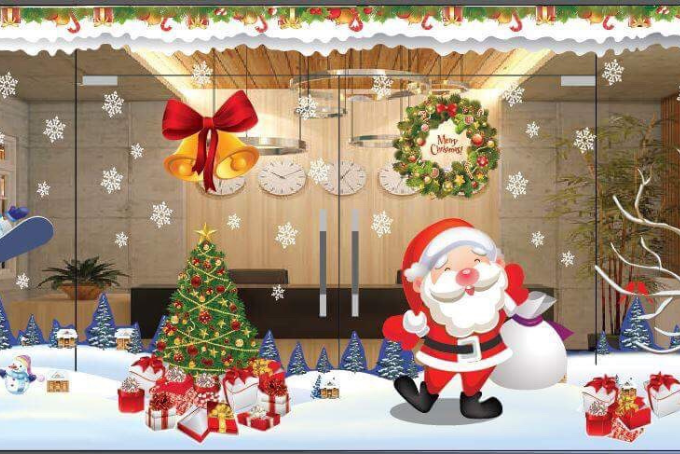 Nếu bạn không có nhiều không gian để trang trí Noel quán cafe bằng những món đồ thật thì decal trang trí Noel chính là vị cứu tinh của bạn rồi.