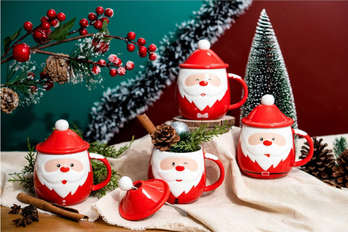 Các quán cafe trang trí noel với ông già Noel ở trên cốc