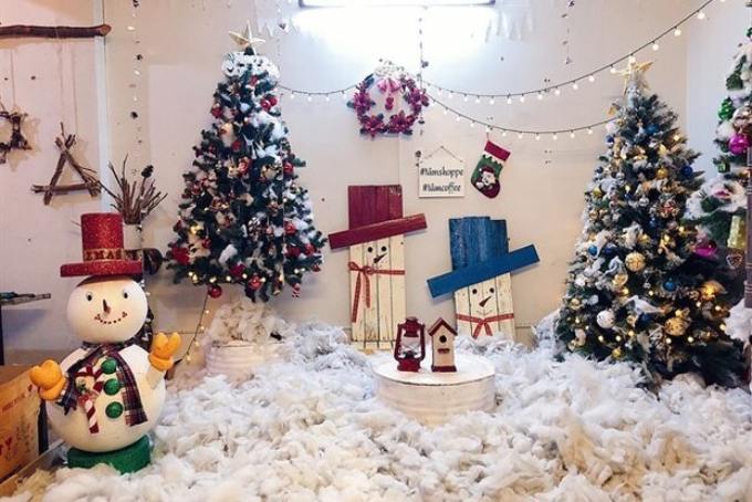 Các quán cafe trang trí noel đẹp với tuyết giả mùa Giáng sinh