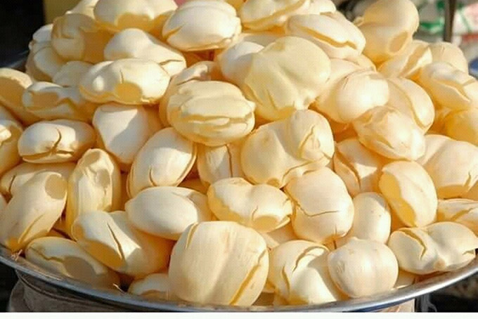 Không giống với đặc sản cốm Hà Nội có màu xanh, cốm đặc sản ở An Giang có màu trắng ngà.