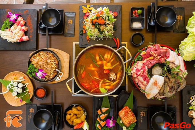 Phần nhìn đã thật sự ghi điểm với mình, tiếp đên phải kể là phần cảm nhận, đến một nhà hàng ăn thì chắc hẳn hai vấn đề quan trọng nhất là không gian và món ăn thôi mà! Cầm cuốn menu trên tay mình không khỏi trầm trồ bởi sự đa dạng ẩm thực của nhà hàng: nào là đồ Nhật, nào là đồ Hàn hay thậm chí còn có hương vị của Thái Lan, ẩm thực 3 nước chỉ gói gọn trong cuốn menu buffet không quá 200k/1 người thôi sao? Đồ ăn kèm thì có: salad, bánh xèo Nhật, kimbap, sushi, gà rán… còn nước lẩu thì có shabu, lẩu Thái, kim chi, miso thế này thì tha hồ mà lựa chọn theo sở thích của bản thận.
