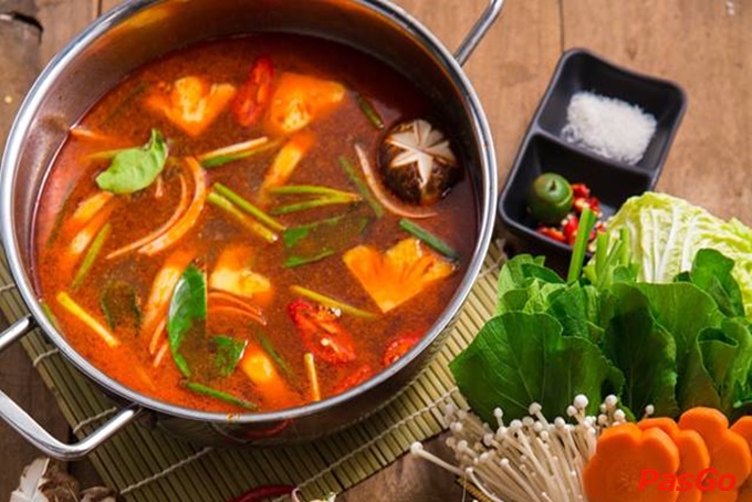 Nhà hàng có nồi lẩu 2 ngăn cho bạn có thể được thưởng thức nhiều vị lẩu hơn nhưng hôm nay mình chọn ăn lẩu Thái thôi, muốn thử xem cái nước chua chua cay cay phổ biến này có làm mình say đắm không.