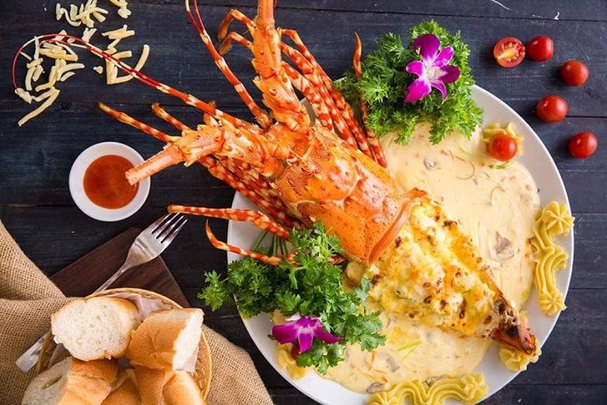 - Tôm hùm nướng phô mai: Sự kết hợp giữa tôm hùm tươi ngon và phô mai béo ngậy sẽ làm hài lòng ngay cả những thực khách khó tính nhất; cùng với đó có thể nhắc tới: tôm hùm hấp rượu vang, cháo tôm hùm bổ dưỡng