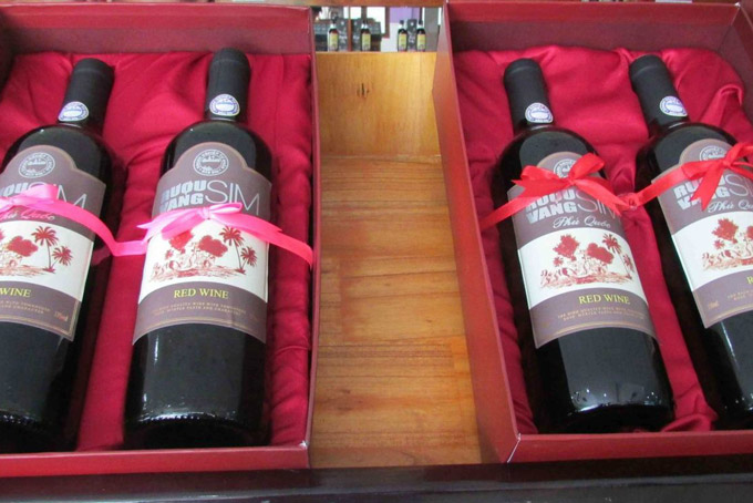 Rượu vang sim Phú Quốc cũng được làm từ trái sim rừng lên men. Rượu vang sim Phú Quốc thường có nồng độ rượu rất thấp, chỉ khoảng 12%. Giá rượu vang sim Phú Quốc trung bình khoảng 200.000đ/chai 750 ml.