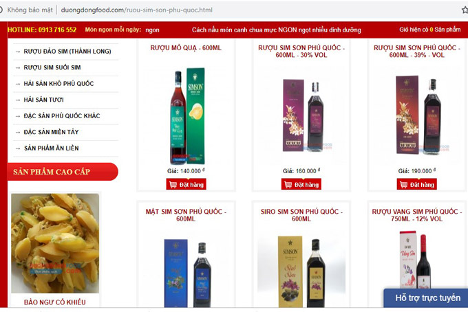Giá rượu sim Phú Quốc trên các trang Web Online
