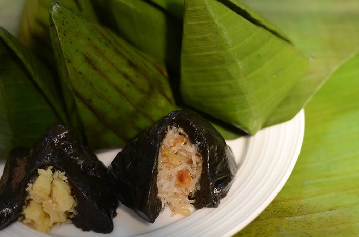 Bánh ít Bình Định có màu đen thú vị được bọc lớp ngoài là lá chuối