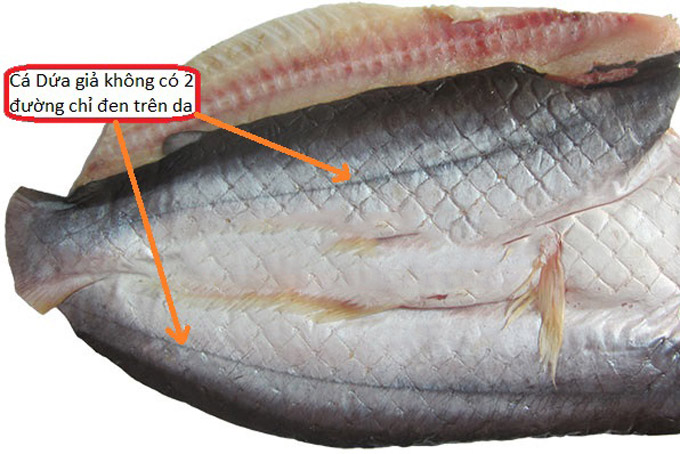 - Khô cá dứa thật có dọc đen chạy dọc lưng ở hai bên còn cá dứa giả không có. Nếu người bán có nói là cá dứa nuôi nên không có thì các bạn cũng không nên tin nha.