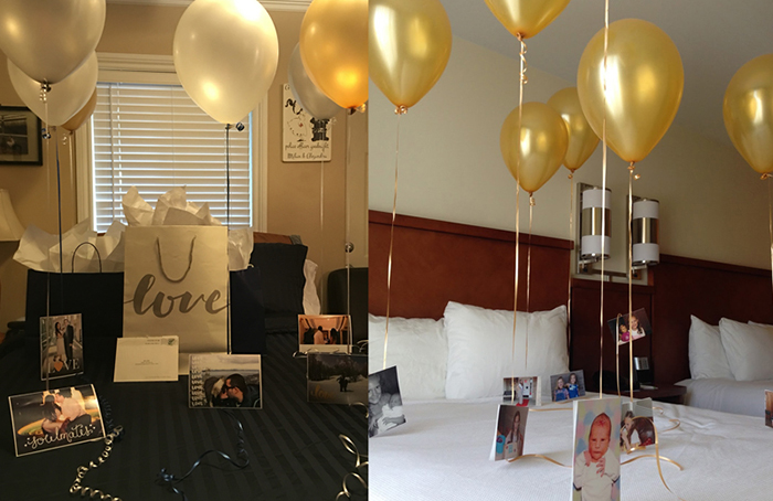 Bóng bay thả trần sử dụng để trang trí sinh nhật cho chồng cũng khá đơn giản, bạn có thế sử dụng những loại bóng bay sinh nhật hình tròn hay trái tim hay có ở các địa điểm bán phụ kiện sinh nhật. Để tăng phần lãng mạn và mới lạ, mỗi một quả bóng bay sinh nhật bạn đính thêm một tấm ảnh kỷ niệm giữa hai người.