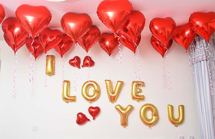 Sử dụng bóng bay trang trí sinh nhật xếp thành “I Love You”.
