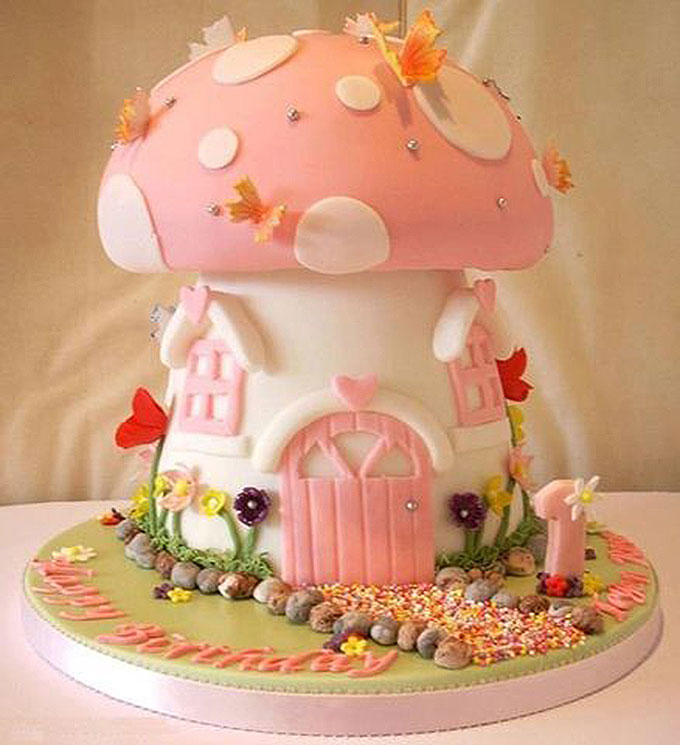 Bánh sinh nhật ngôi nhà nấm xinh xắn cho bé 1 tuổi