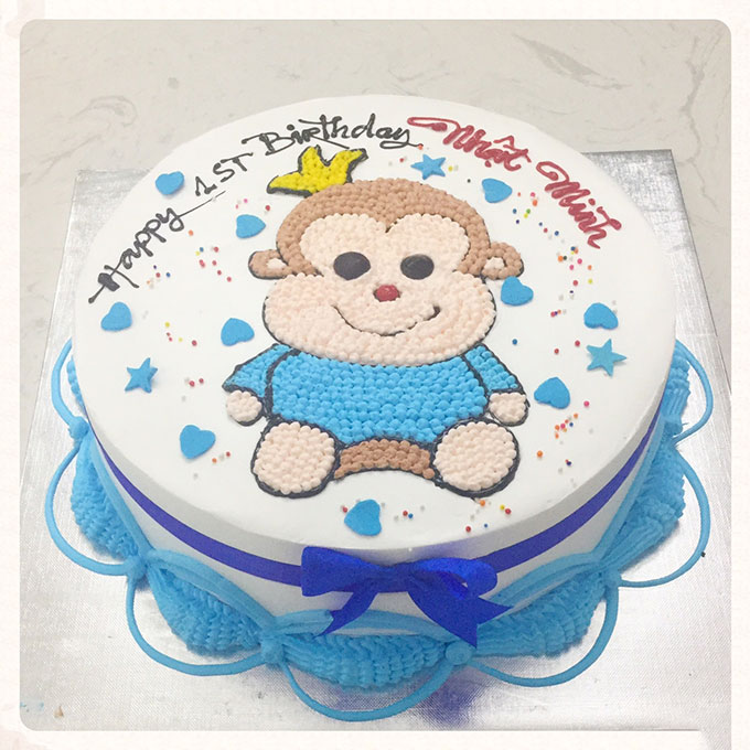 Mẫu bánh sinh nhật với chú khỉ mừng thôi nôi bé trai