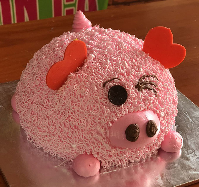 Bánh kem hình con heo màu hồng ngộ nghĩnh