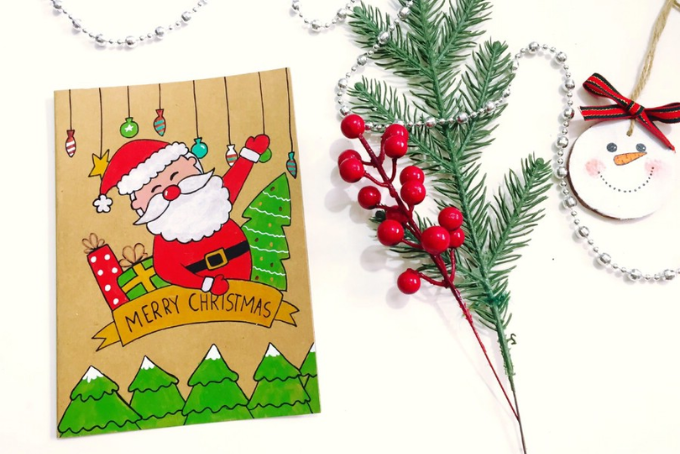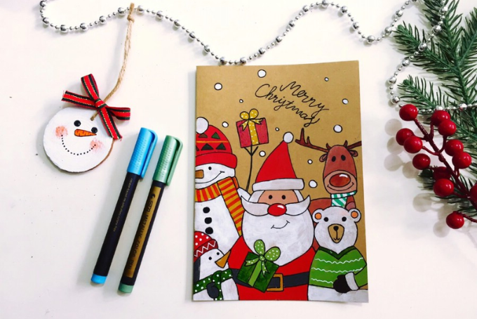 Ngoài cách làm thiệp in, thiệp cắt dán, bạn có thể tự tay vẽ trên chính chiếc thiệp đó, có nhiều ý tưởng để vẽ trang trí thiệp, cùng xem các mẫu thiệp Giáng sinh tự tay vẽ dưới đây nhé.