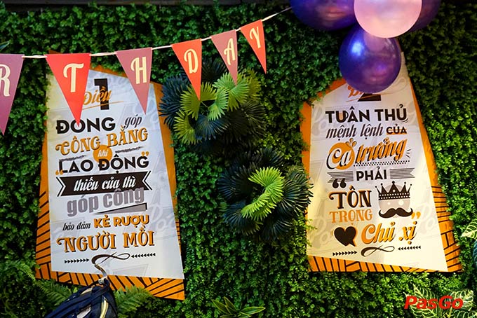 Nhắc đến Sài Gòn, người ta nghĩ đến ngay những bàn nhậu phong phú. Thật dễ dàng khi tìm nhà hàng, quán nhậu tại nơi đây nhưng không phải địa điểm nào cũng làm hài lòng bạn. PasGo sẽ gợi ý cho bạn một nhà hàng cực lý tưởng. Hãy đến Póc – Nướng & Bia để được trải nghiệm một thực đơn đồ sộ những món nhậu và tận hưởng không gian rộng thoáng nào! Vừa bước đến cửa nhà hàng thôi, chắc chắn bạn sẽ thích thú bởi không gian mở của nơi đây, giúp cho bạn có những phút giây thoải mái bên bạn bè người thân. Nổi bật không gian của Póc là những bộ bàn ghế gỗ đơn giản, trẻ trung cùng những bức tranh khẩu hiệu ấn tượng khiến mọi người khi tới đây sẽ có cảm giác quen thuộc.