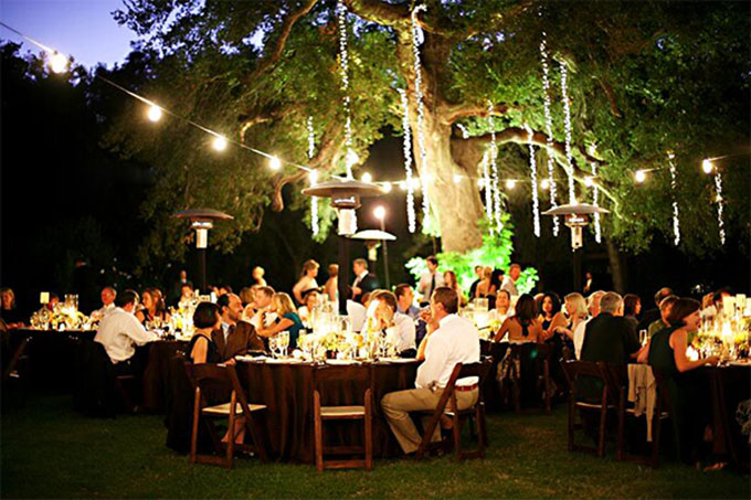 Ngoài việc tổ chức trong nhà hàng, nhiều công ty cũng sẽ có ý tưởng tổ chức ngoài trời. Đây là không gian mở, rộng rãi và thoải mái, có thể kết hợp team building. Về cơ bản, những yếu tố cần thiết sẽ giống như không gian nhà hàng, tuy nhiên sẽ cần tập trung nhiều về ánh sáng và đèn trang trí nếu tổ chức vào buổi tối.