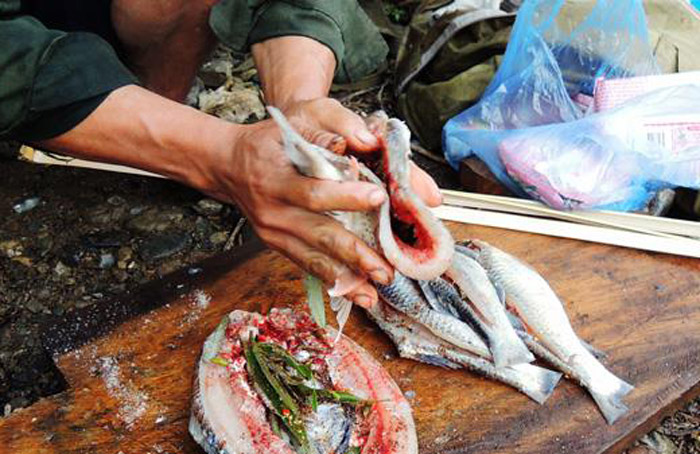 - Loại bỏ phần ruột cá và tuyệt đối không được rửa lại bằng nước sạch (vì rửa sạch sẽ làm mất đi một phần vị ngọt trong mình cá).