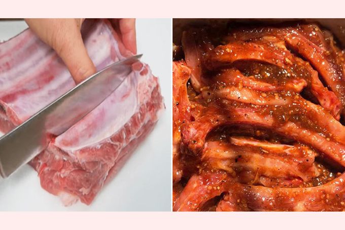 Ướp gia vị cho sườn để làm sườn kho trứng cút nước dừa